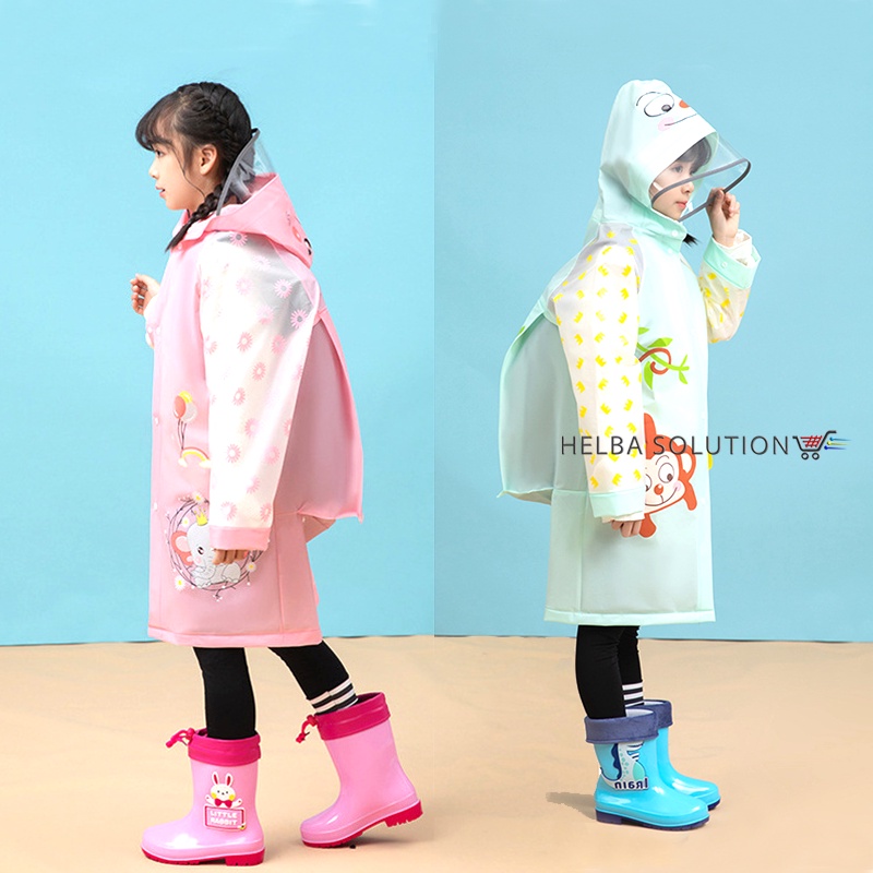 Jas Hujan Karakter Anak Perempuan Laki Laki Mantel Hujan Ponco Terusan Dengan Ruang Ransel Kids Raincoat