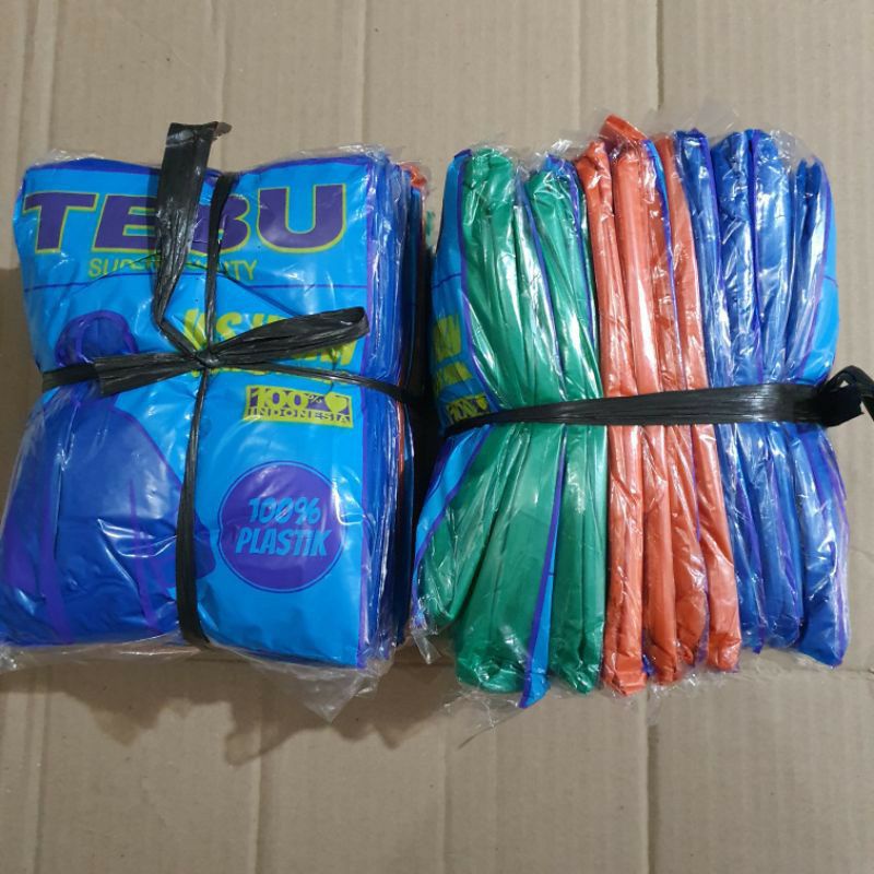 - jas hujan plastik cap Tebu bahanya tebal,ulet dan kuat tidak mudah robek,bahkan bisa digunakan berkali kali.