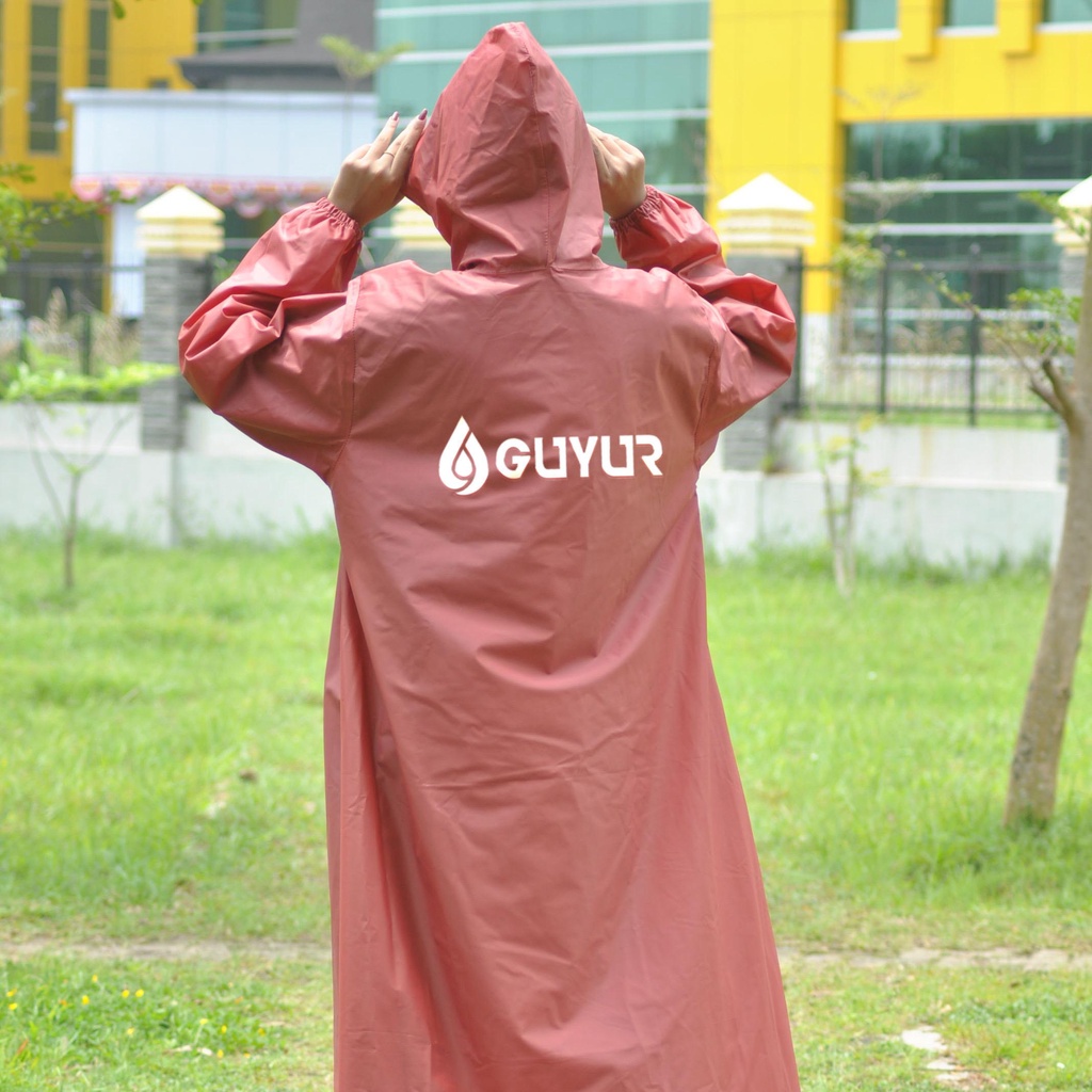 – Atasan panjang – Bahan tebal namun tidak setebal jas hujan pada umumnya (yang kaku dan berat)