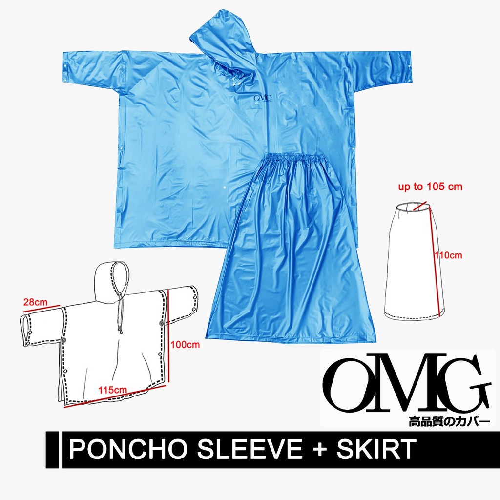 Detail Jas Hujan Poncho Jubah Lengan Sleeves dan Rok Skirt (Paket) OMG Japan Tahan Air