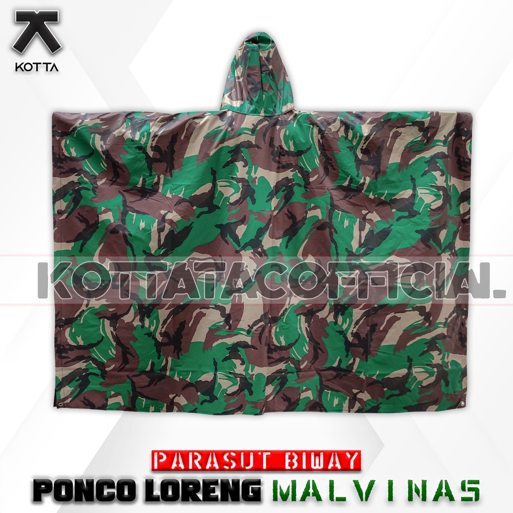 Bahan : PARASUT BIWAY Model : Ponco/kelelawar Motif : Loreng Malvinas Kancing Snaps Jahitan rapih dan kuat Anti retak dan tahan lama
