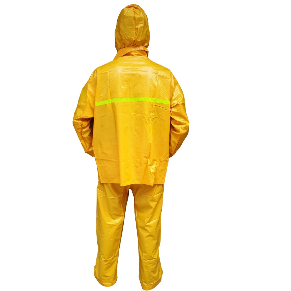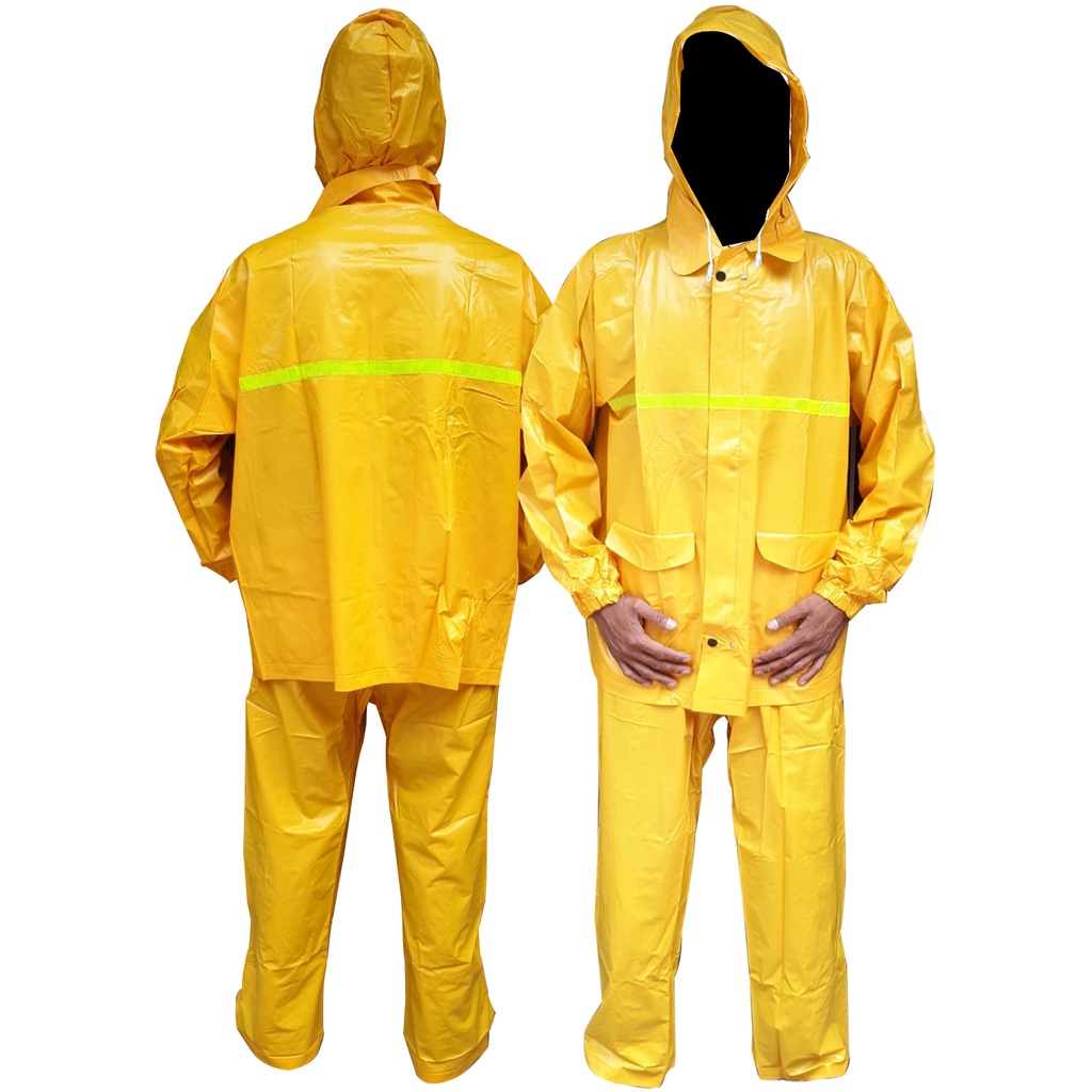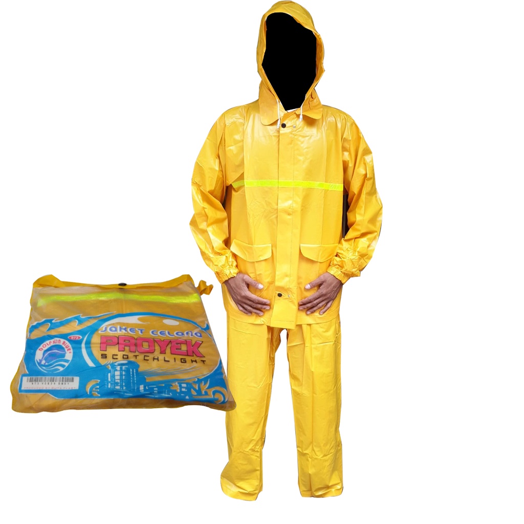 Jas Hujan Pria Dewasa Mantel Proyek Kuning Jaket Celana Bahan yang tahan lama dan tahan air terbuat dari bahan pvc atau polyester untuk melindungi pengguna dari hujan Desain yang ergonimis yang menyesuiakan dengan tubuh pengguna sehingga memberikan kenyamanan Dalam mobilitas yang sangat tinggi Kepala dan leher tertutup dengan rapat karna di gunakan dalam kondisi hujan yang sangat deras Jaket dengan resleting dan ada kantong bagian depan untuk menyimapan barang Warna yang cerah kuning untuk memudahkan pengguna di lihat oleh orang lain