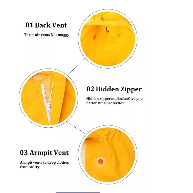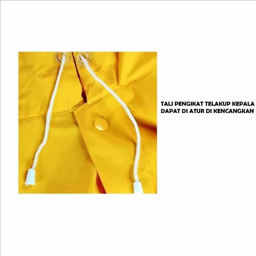 Jas hujan terusan warna kuning produk selalu ready silahkan langsung order Jas hujan pvc PSE lebih tebal warna kuning 1 ,bahan pvc 100% 2 .tebal 3. Awet Ada scot light jadi klo kena lampu menyala. yang warna kuning tipe RC228 yang warna oren dan hijau tipe RC227 Ukuran all size panjang 110cm lebar 60cm