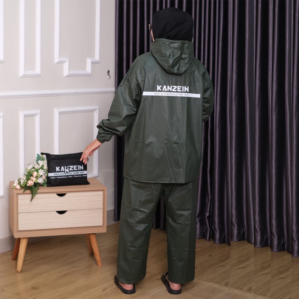 Otomotif > Aksesoris Pengendara Motor > Jas Hujan > Jas Hujan Raincoat Mantol mantel Jas ujan Pria Wanita Dewasa Bahan lentur tebal karet Anti rembes merk KANZEIN setelan jaket celana