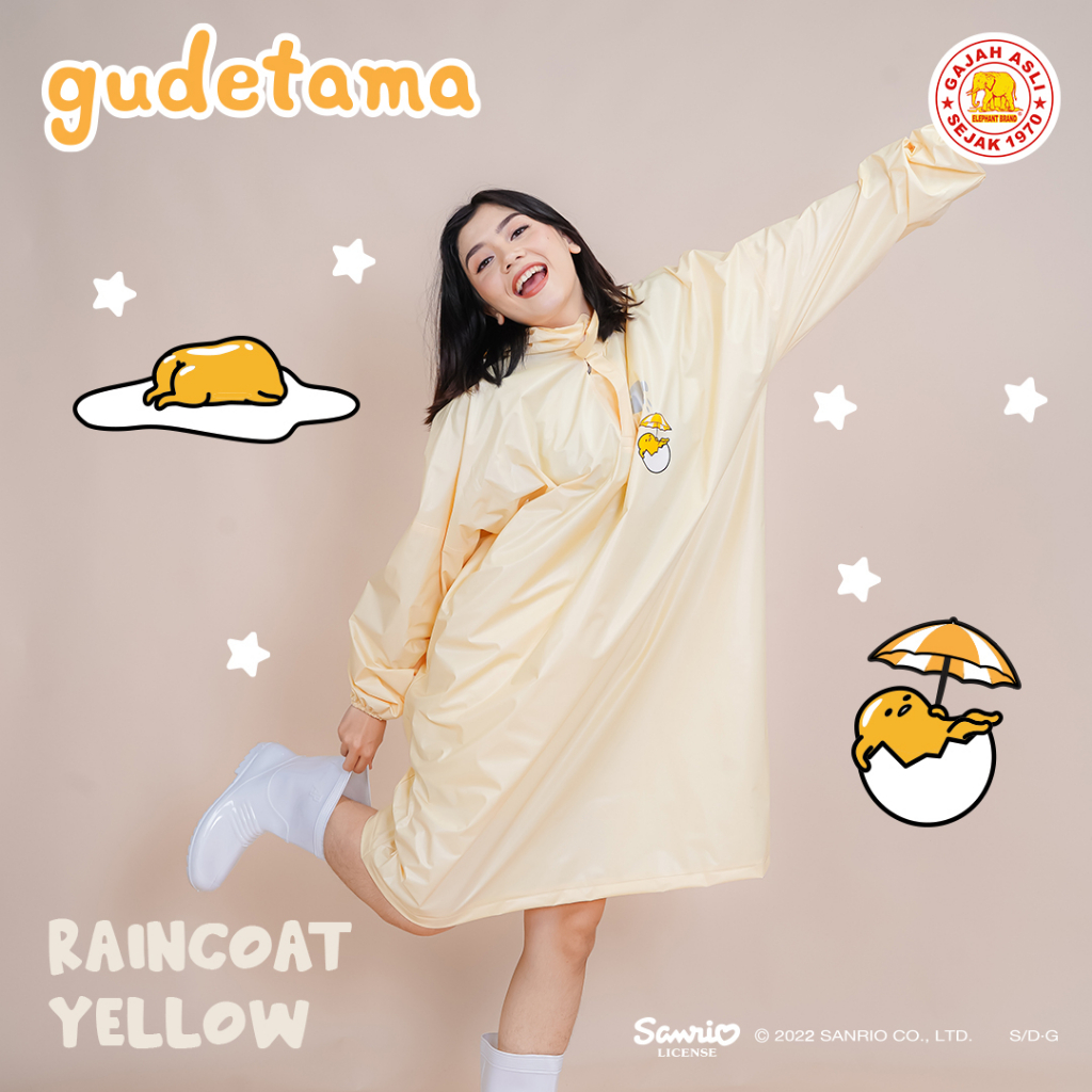Detail Produk : Gambar : GUDETAMA - Sanrio License Berat Produk : 425gr (1kg pertama muat 3pcs) Bahan : PVC Ukuran : All Size (Tidak ada ukuran) (setara XL Dewasa) Panjang baju : 98cm Lebar baju : 76cm Panjang lengan : 74cm