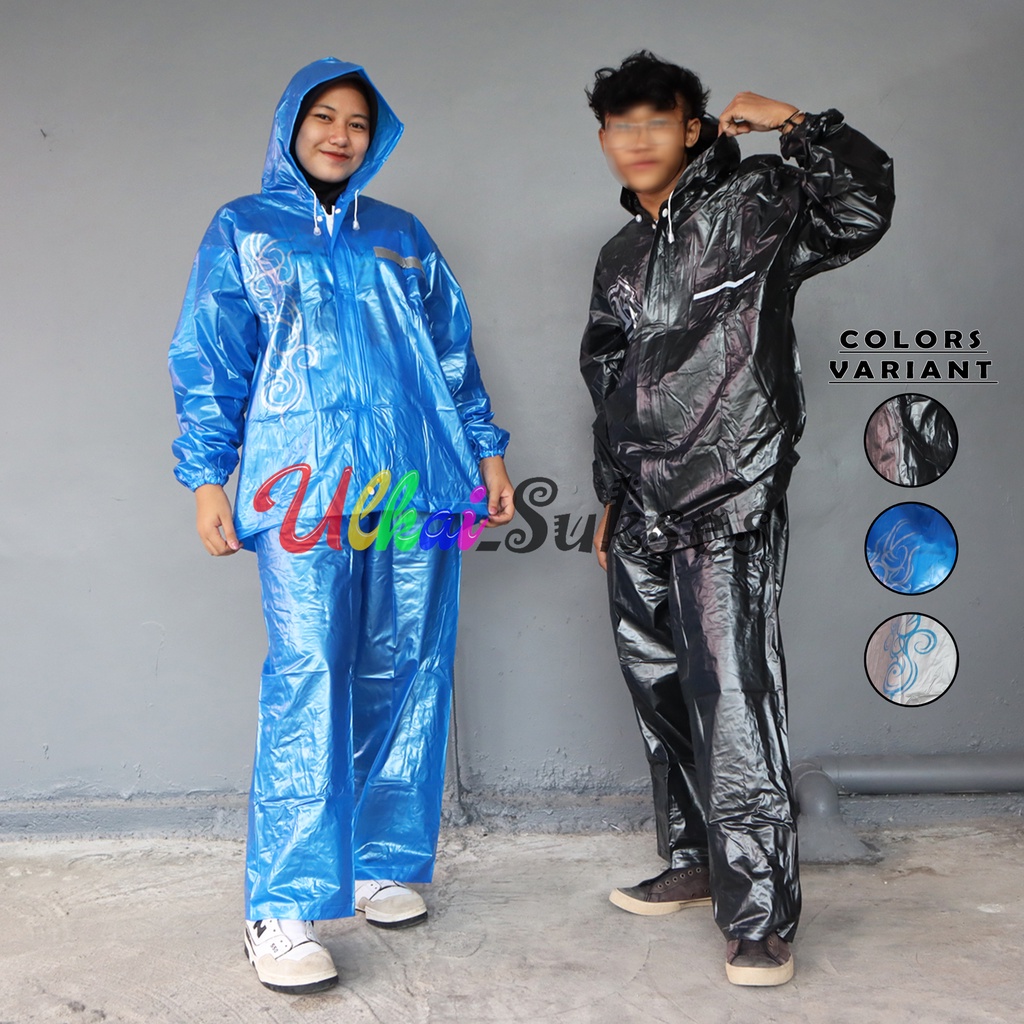 Anti bocor dan tidak bau Enak dan nyaman di pakai Bahan awet dan ulet Sambungan bahan lebih kuat (tidak mudah robek) Aman di gunakan saat berkendara Banyak bentuk, warna dan pilihan model 100% buatan indonesia Design menarik Jahitan pressan (baju dan celana) Pergelangan tangan karet Tidak memiliki jahitan samping