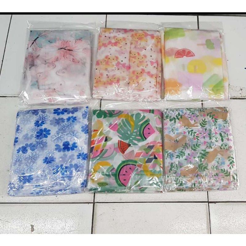 Jas hujan transparan plastik bermotif - tersedia 6 motif cantik seperti digambar: beruang, love, bunga Ungu, semangka, bunga biru dan bunny - terbuat dar bahan plastik PVC tipis namun dapat dipakai ulang - ada kancing dibagian depan - tali pengencang tutup kepala