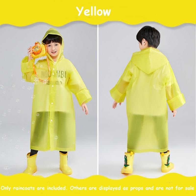Jas hujan mantel terusan anak polos. Terbuat dari bahan EVA plastik yang halus, lembut, dan berkualitas. Bukan jas hujan plastik kresek sekali pakai; jas hujan dapat dipakai ulang jika dirawat dengan baik.