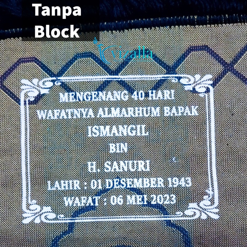 HARAP DIPERHATIKAN SEBELUM MEMESAN: *komunikasikan terlebih dahulu kepada admin kami melalui chat untuk mendapatkan rekomendasi terhadap produk yang ingin di sablon. *Minimal order 60pcs produk yang dibeli dari toko kami untuk di sablon. (contoh: memesan sajadah 60pcs, lalu ingin disertakan sablon). *Harap berikan format tulisan yang ingin disablon melalui chat ataupun catatan pembeli. *Pengerjaan memerlukan waktu selambat-lambatnya tujuh hari, bisa lebih cepat tergantung sedang banyak atau tidak nya antrian sablon. *Tulisan boleh berdasarkan keinginan sendiri atau sesuai format seperti contoh. *Harap teliti mengenai data tulisan yang ingin di sablon, jika terjadi kesalahan penulisan yang disebabkan salah informasi yang diberikan oleh pembeli kepada penjual, itu diluar tanggung jawab kami (kecuali kesalahan ada di kami yang salah dalam mencetak tulisan yang tidak sesuai dengan data tulisan yang diberikan pembeli, akan kami garansi 100%) *Kerapihan tinta diluar tanggung jawab kami, karena setiap bidang berbeda2 karakteristik jika terkena tinta sablon, tapi jangan khawatir akan kami maksimalkan pengerjaannya.