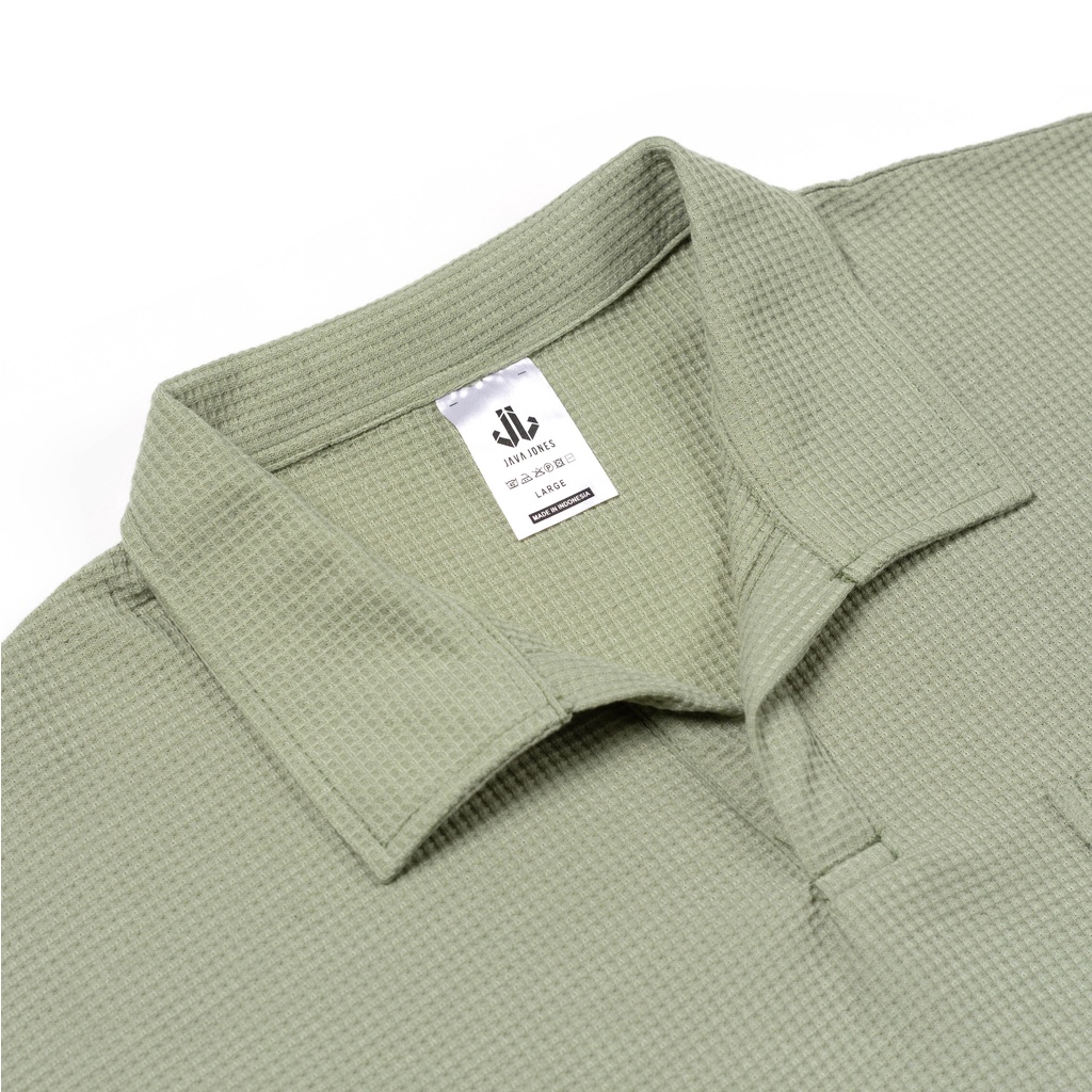Detail JAVAJONES Oversized Polo Waffle Nolan Matcha | Kaos Polo Pria Wanita