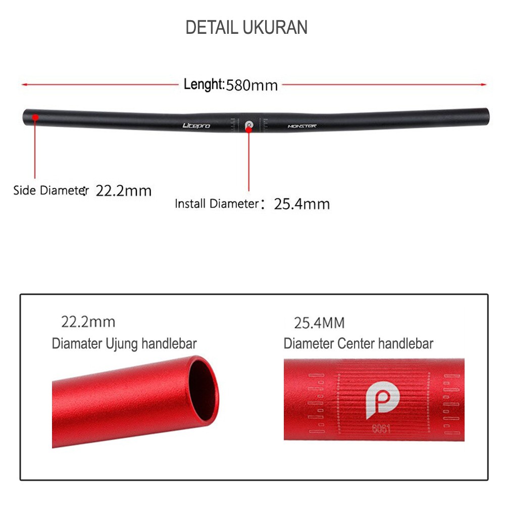 Detail JAVASHOP Handlebar Stang Sepeda Litepro Monster 25.4 x 580mm