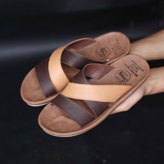 Detail JAVIT BROWN Sandal pria kulit asli cevany original handmade sandal jepit kulit pria bisa COD