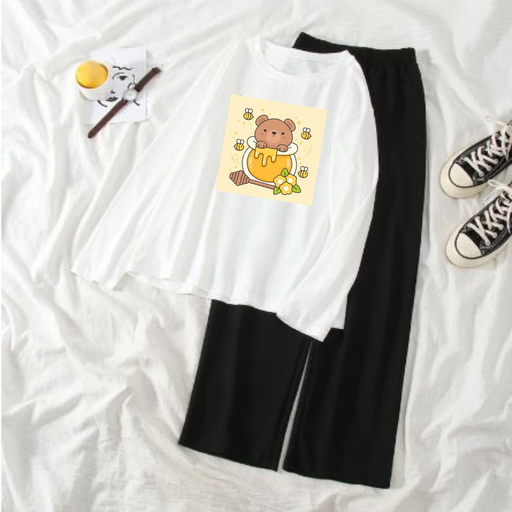 Detail JBF Setelan Baju Remaja Wanita Berhijab Kaos Lengan Panjang Dan Celana Kulot Honey bear