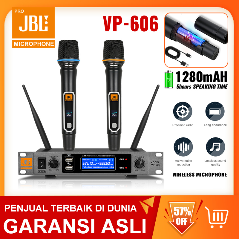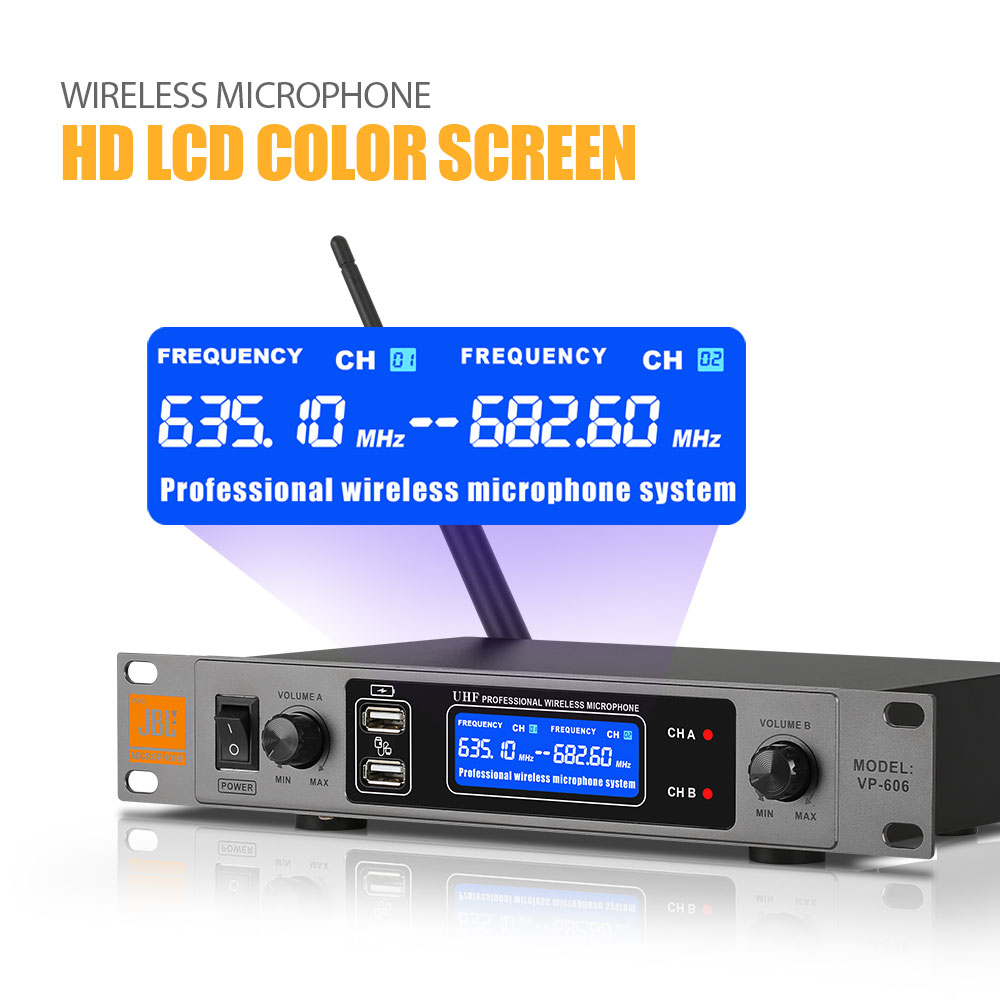 Elektronik > Perangkat Audio & Speaker > Mikrofon & Aksesoris > JBL VP-606 Professional 2-channel Wireless Microphone UHF Receiver dengan port USB dengan MIC nirkabel asli yang dapat diisi ulang