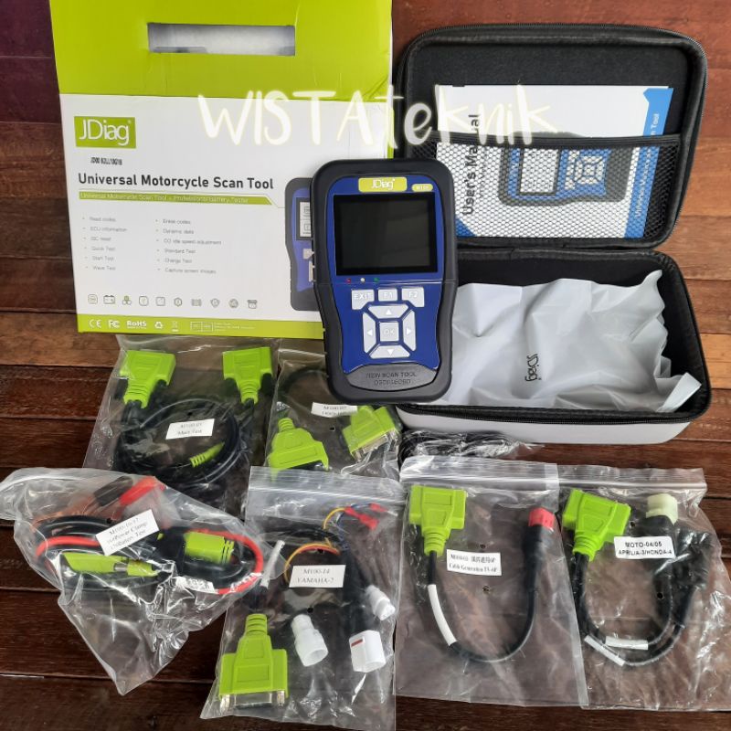 JDIAG M100 PACKING LIST 1.jdiag m100 2.tool boks 3.soket kabel main test 4.soket kabel tes aki 5.soket kabel Dlc Honda 4p 6.soket kabel Dlc yamaha 2p 3p 4p 7.soket kabel Dlc vespa/aprilia 8.soket kabel DLC EURO5 9.buku manual / panduan 10.kabel usb untuk update 11. kabel obd2 16pin 12. soket suzuki 13. soket kawasaki