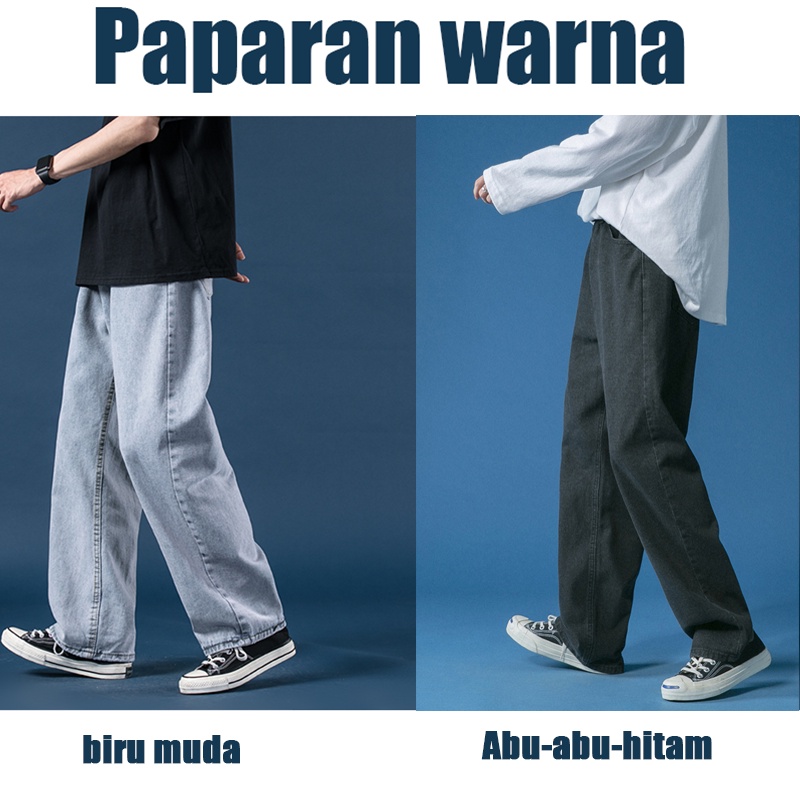 Detail jeans korean style pria celana lurus Kulot Oversize Jeans Pria Kasual Sederhana Nyaman jeans korean style baggy pants jeans