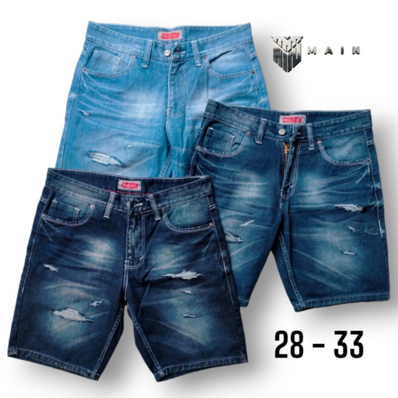 Pakaian Pria > Denim > Celana Jeans Pendek > Jeans Sobek Ripped Stiker Celana Pria Pendek