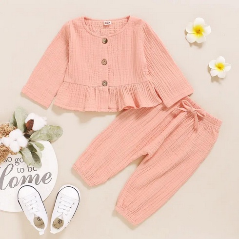 Set Anak Perempuan KROWA BAHAN TRINITY * NO1 estimasi usia 6 bulan - 1 tahun * L. Dada 56 cm x P. baju 31 cm x P. Celana 39 cm * NO2 estimasi usia 1-2 tahun * L. Dada 58 cm x P. baju 32 cm x P. Celana 40 cm * NO3 estimasi usia 2-3 tahun * L. Dada 60 cm x P. baju 34 cm x P. Celana 41 cm * NO4 estimasi usia 3-4tahun * L. Dada 62 cm x P. baju 35 cm x P. Celana 42 cm