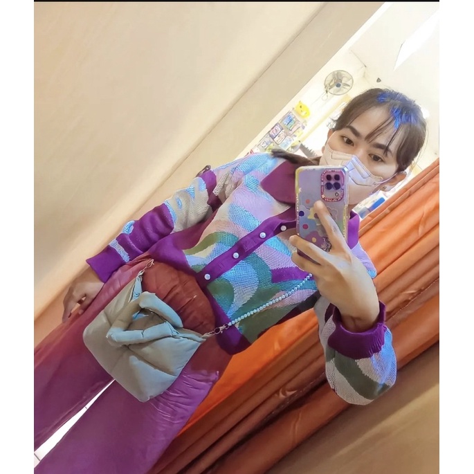 JEJE CARDIGAN RAJUT MOTIF KEMEJA PELANGI KERAH KANCING PREMIUM