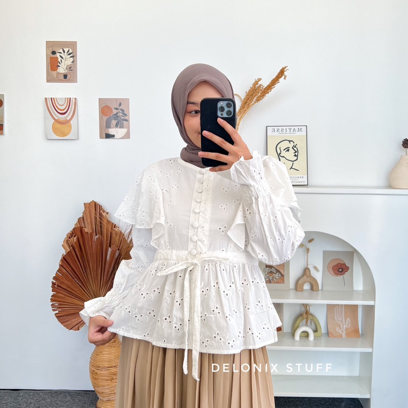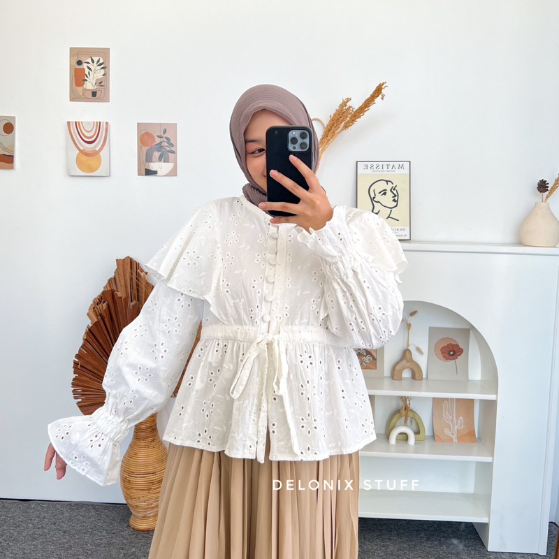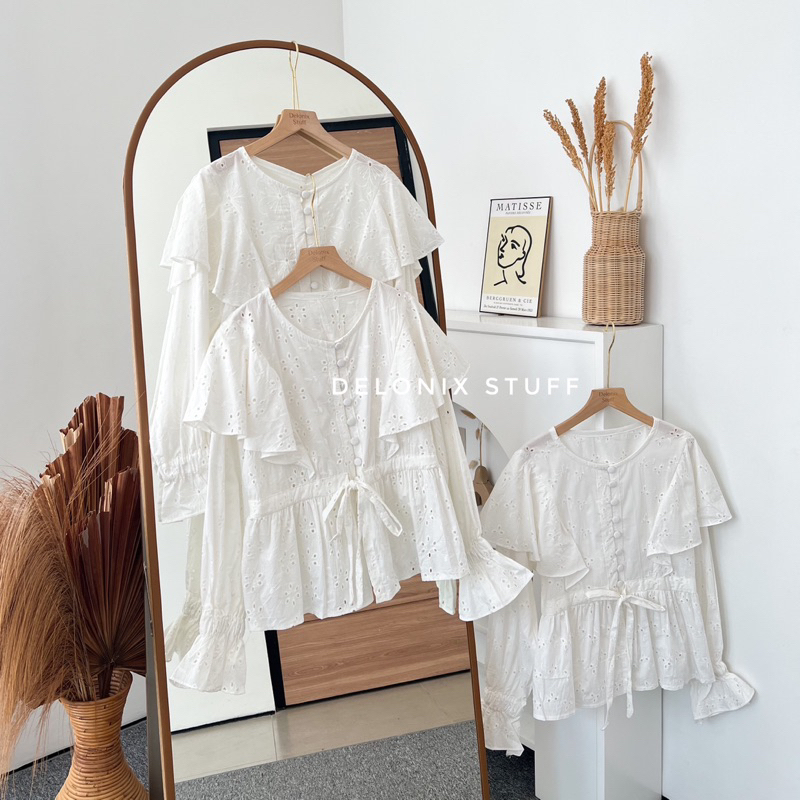 All size fit L Lingkar dada : 100 cm Panjang tangan : 56 cm Panjang baju : 58-60 cm Bahan : lace brukat katun