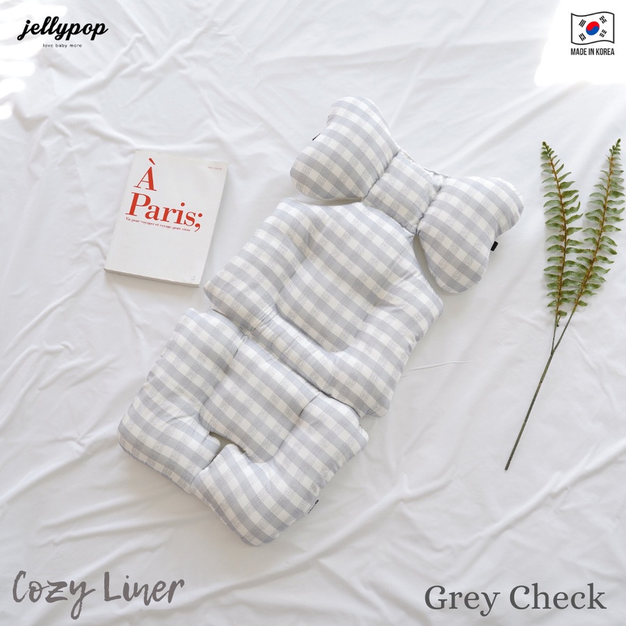 * Jellypop Cozy Liner merupakan alas bayi yang dapat digunakan pada stroller, Baby bouncer, dan dapat digunakan pada carseat. * Bagian kepala dari Jelly Pop Cozy Liner memiliki desain lebar dan tebal yang melingkari leher dan kepala bayi agar dapat membantu mempertahankan postur kepala bayi tetap stabil. * Bagian depan dari Cozy Liner terbuat dari 100% Cotton dan dilapisi dengan 3D air mesh untuk memberikan sirkulasi udara yang baik serta dapat menjaga bayi agar tidak mudah berkeringat sehingga dapat memberikan rasa nyaman pada bayi anda. * Jelly Pop Cozy Liner bersertifikat 100% aman dari Korea. * Dimensi: 34 x 70 x 6cm