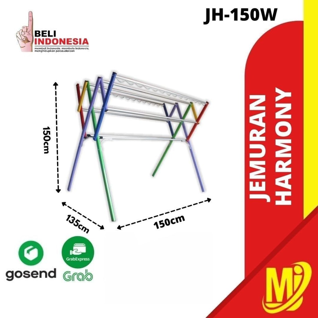 - Dengan menggunakan bahan 100 % Aluminium Jemuran Baju JH-150W merupakan jemuran yang sangat KUAT & ANTI KARAT.