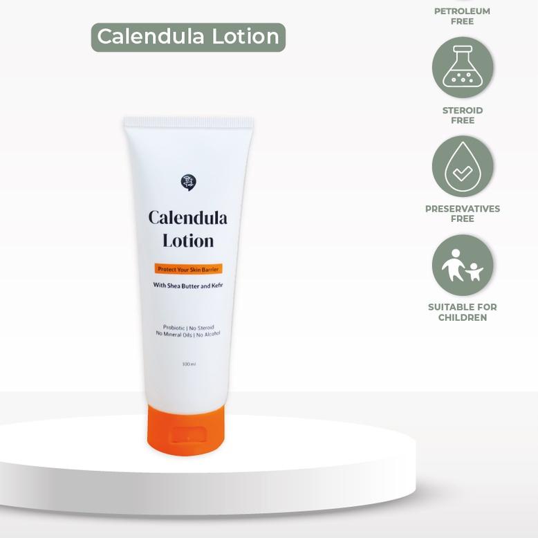 Calendula Lotion efektif untuk : 🍀 mengunci kelembaban pada kulit, 🍀 mencegah TEWL (Transepidermal Loss), 🍀 meredakan eksim/dermatitis dan psoriasis juga 🍀 memperbaiki skin barrier, 🍀 membuat kulit menjadi sehat.