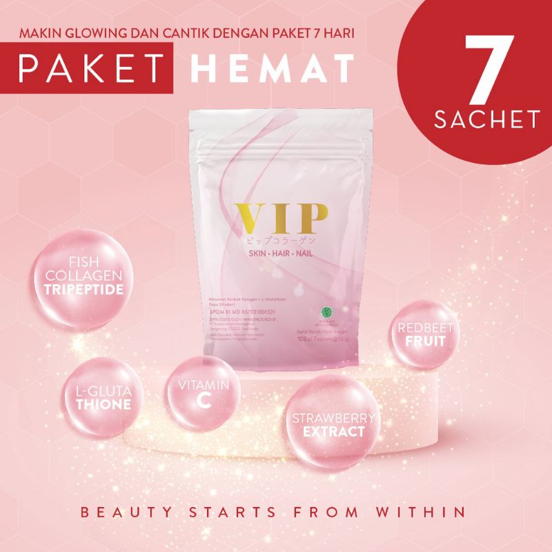 VIP Collagen The Best Formula 5X lebih ampuh mencerahkan dibanding merk lain Kulit lebih kencang dan lebih awet muda BPOM : MD867031001531
