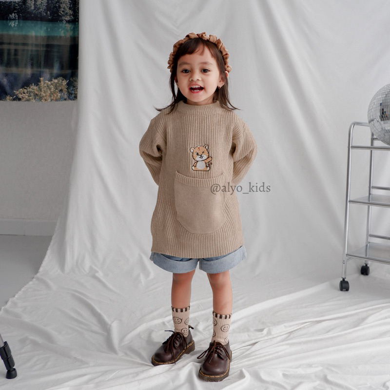 JENNY POCKET SWEATER KNIT OVERSIZE / Sweater Rajut Anak / Sweater Saku Anak