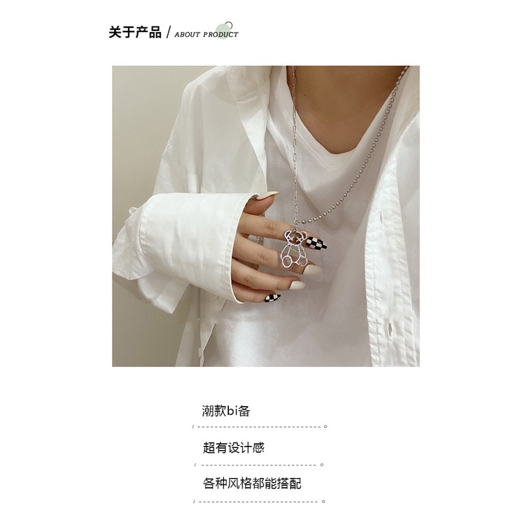 Detail Jepang dan Korea gaya pribadi hip hop hollow beruang liontin kalung wanita trendi niche desain titan