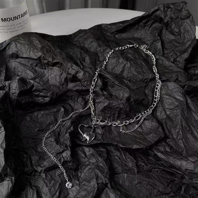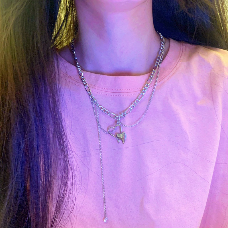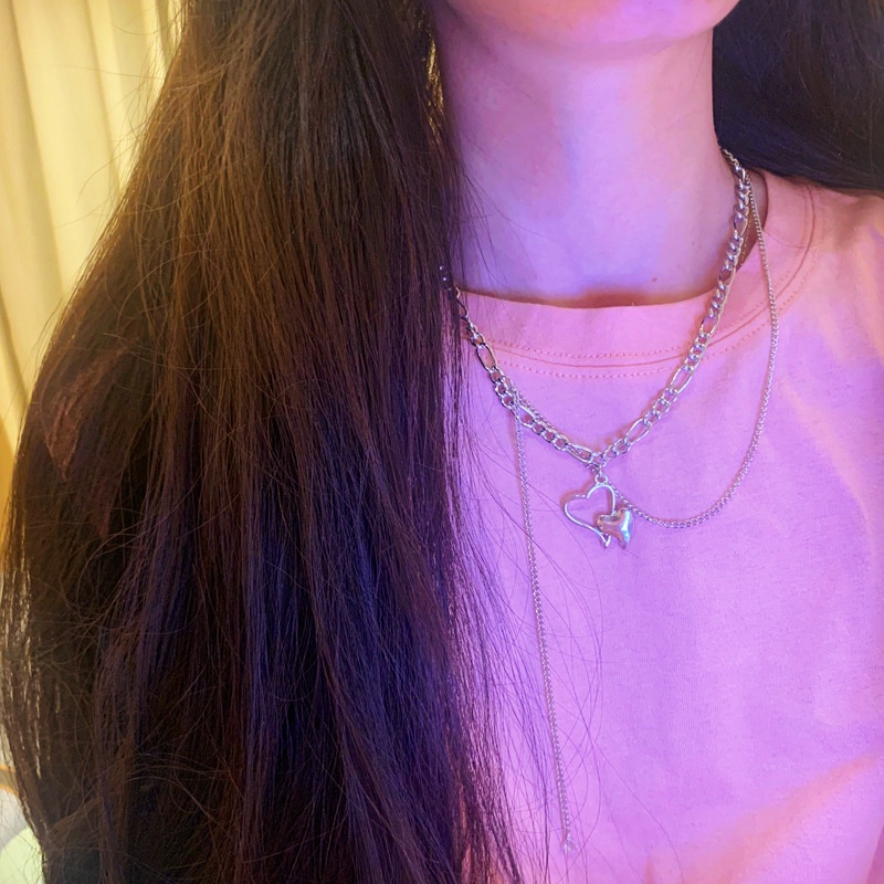 Detail Jepang dan Korea ins pop sederhana gaya dingin hollow jantung double-layer kalung wanita hip hop tre