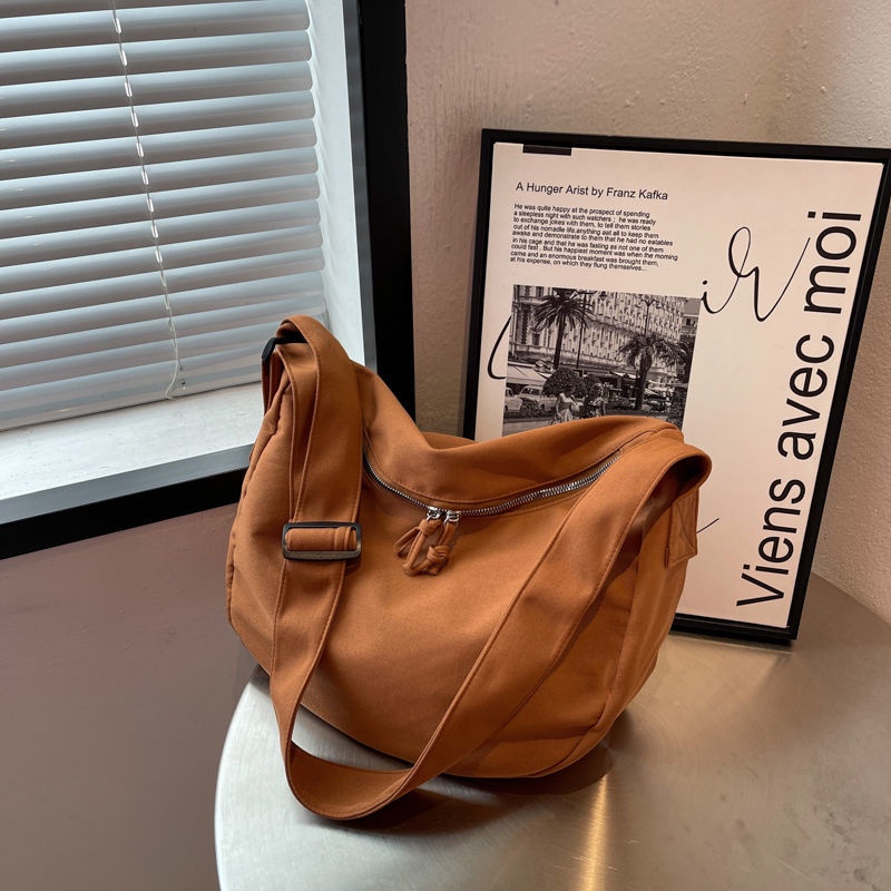 ☎♤❇Jepang merah kanvas tas utusan tas wanita musim panas rekreasi semua pertandingan angin malas mahasiswa kelas tas bahu berkapasitas besar