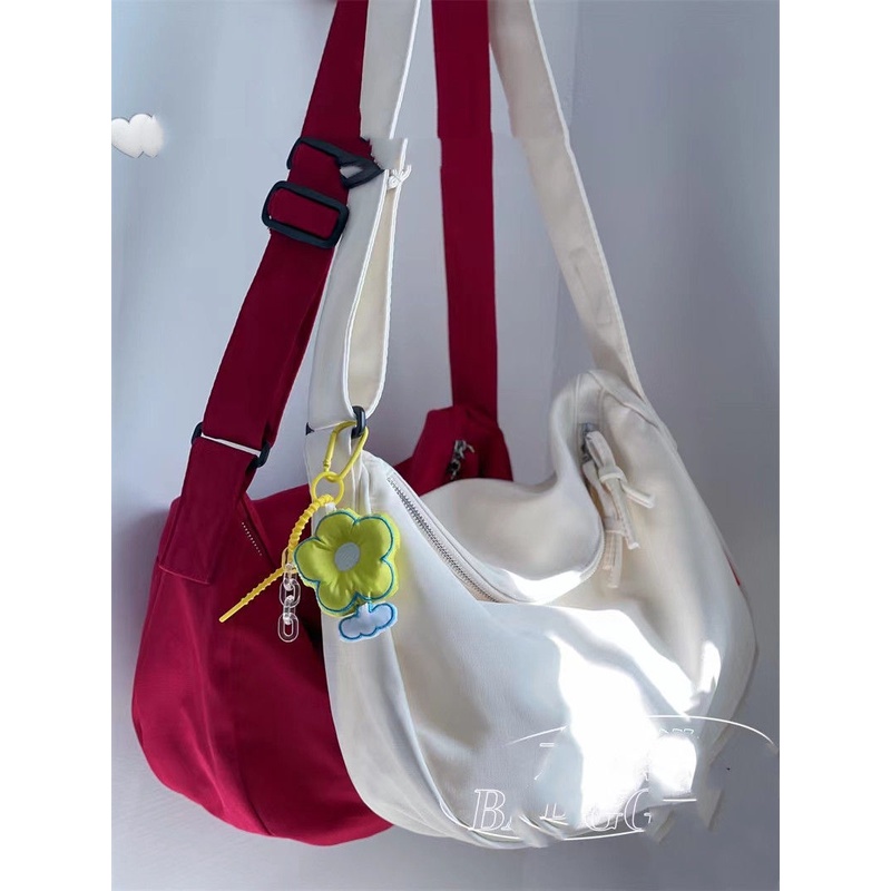 ✌Jepang merah kanvas tas utusan tas wanita musim panas rekreasi semua pertandingan angin malas mahasiswa kelas tas bahu berkapasitas besar