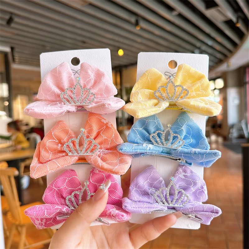 Detail Jepit Anak Perempuan Motif Mahkota Pita Katun Jaring