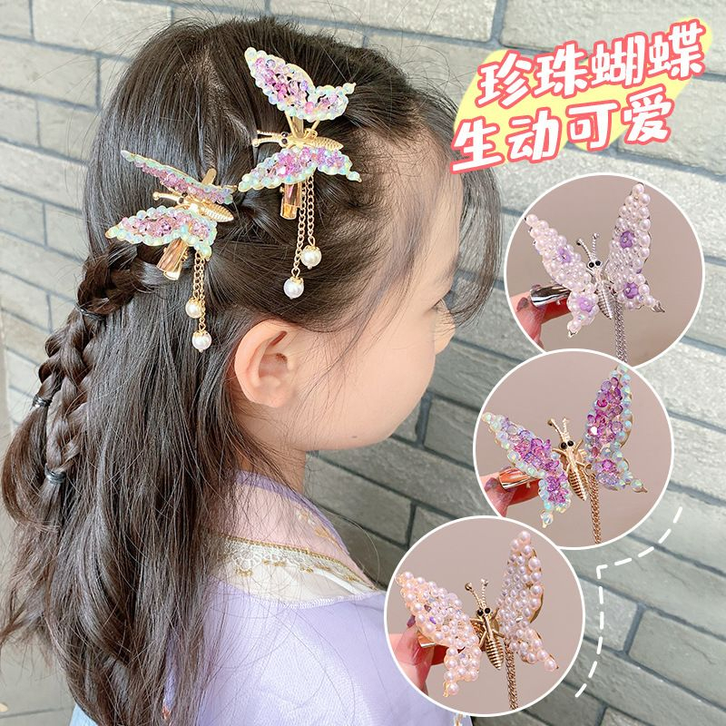 Jepit Anak Perempuan Motif Sayap Kupu Kupu Rumbai Mutiara