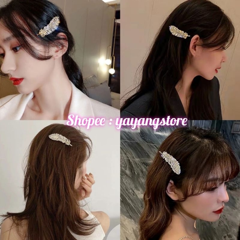 Aksesoris Fashion > Aksesoris Rambut > Jepitan & Pin Rambut > Jepit / Jepitan / Klip / Hair Clip / Pin Rambut Model Daun Permata Panjang Blink Blink Acara Pesta Cantik Anak Wanita dan Dewasa