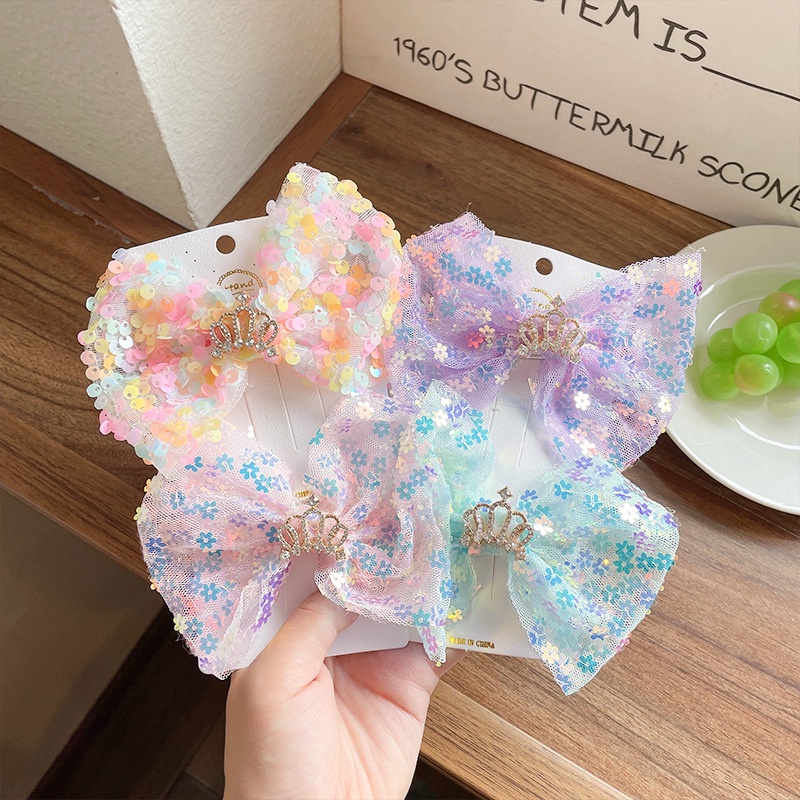 Detail Jepit Rambut Anak Perempuan Bentuk Pita Manik Mahkota Aksesoris Rambut Fashion Anak AK257