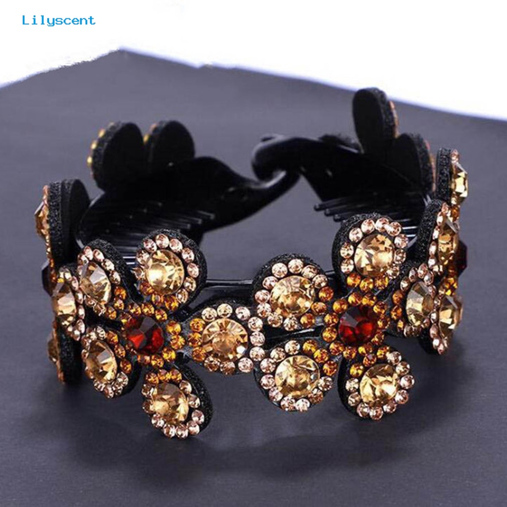 Detail Jepit Rambut Bentuk Bunga Aksen Berlian Imitasi