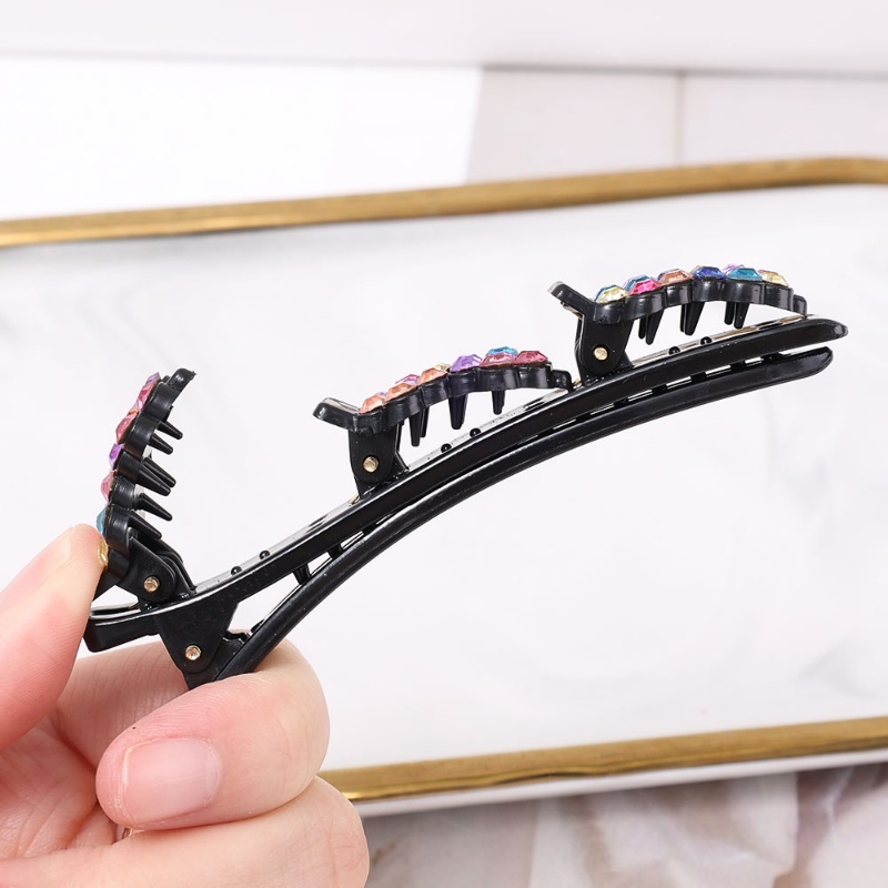 Spesifikasi Bahan: Plastik Kategori: Jepit Rambut Warna: ungu, mawar, sampanye, abu-abu biru tua, warna campuran Gaya: Modis Ukuran: Panjang sekitar 9 cm Berlaku: harian, pesta, belanja, kencan, pemberian hadiah Produk termasuk: 1 pc jepit rambut