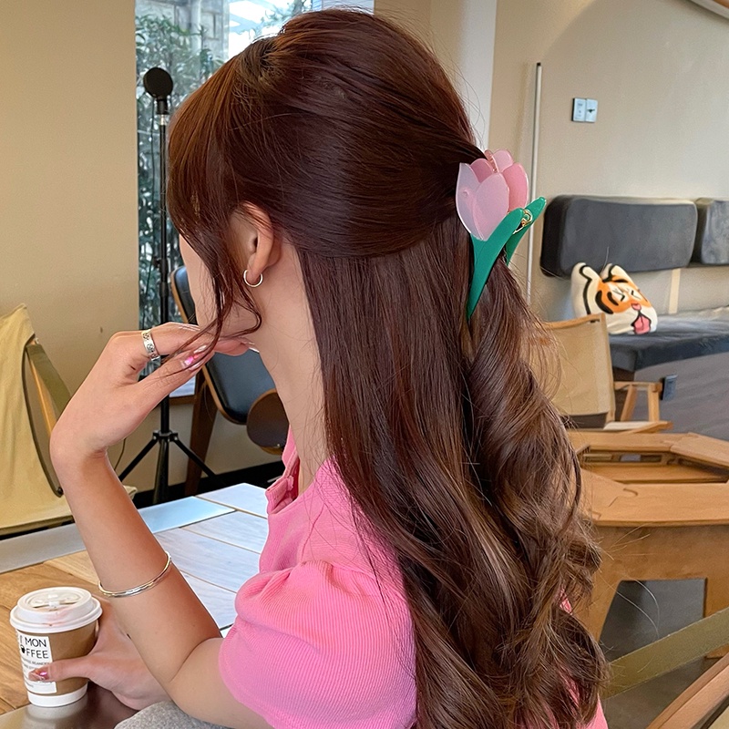 Detail Jepit Rambut Bentuk Bunga Tulip Bahan Akrilik Gaya Korea Untuk Perempuan