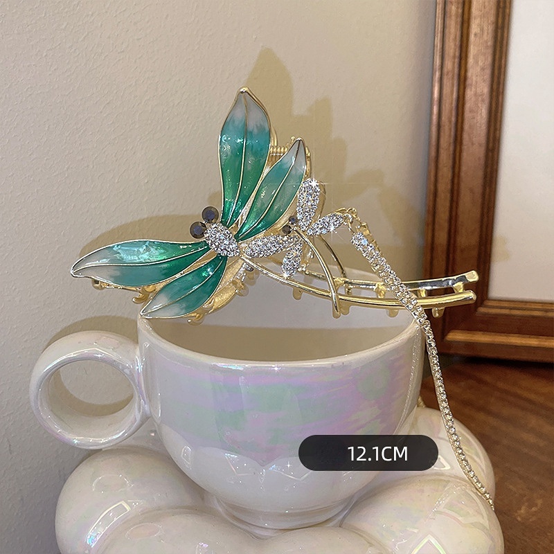Detail Jepit Rambut Bentuk Capung Aksen Berlian Imitasi Warna Hijau Untuk Wanita
