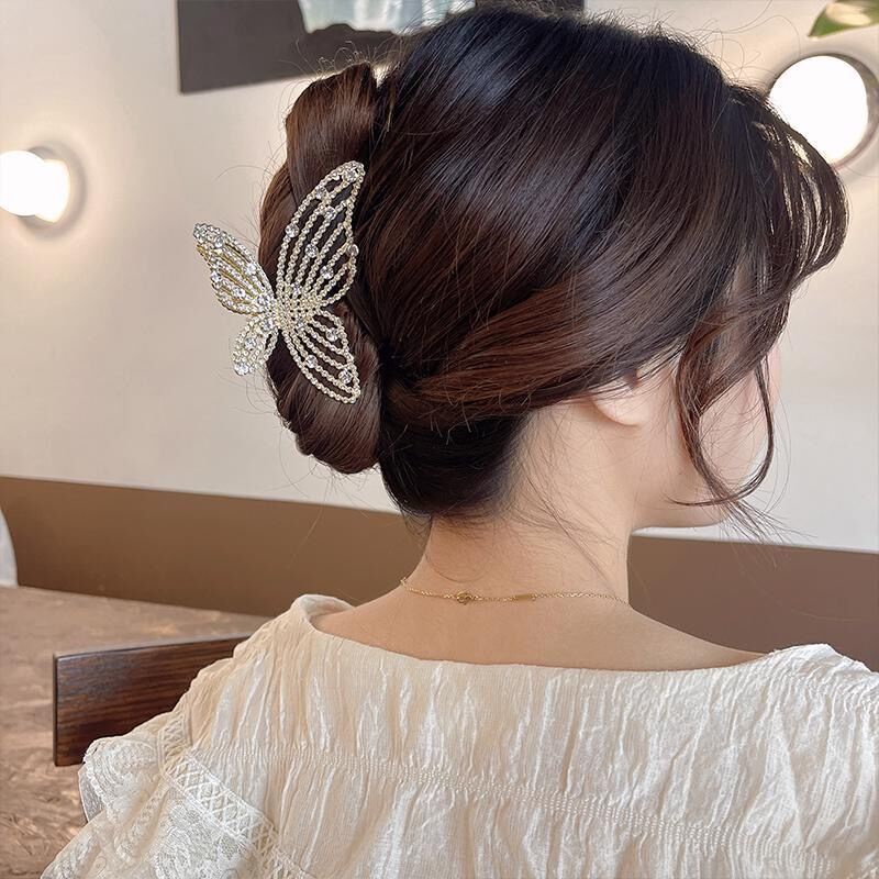 Detail Jepit Rambut Bentuk Kupu-Kupu Aksen Berlian Imitasi Bahan Alloy Gaya Korea Untuk Wanita
