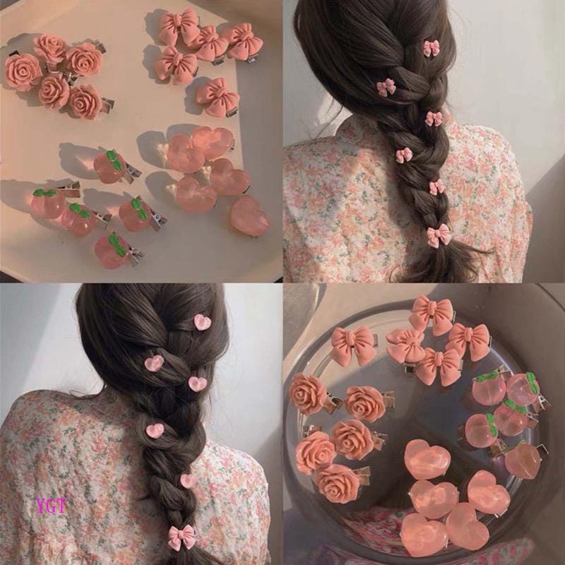 Detail Jepit Rambut Bentuk Pita dan Bunga Kecil / Jepit Korea Lucu