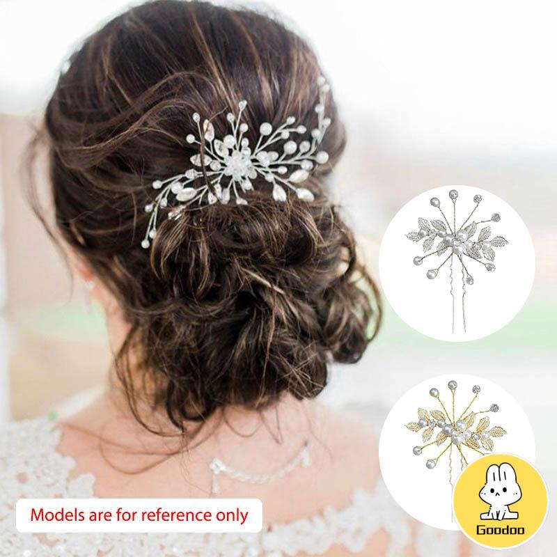 Detail Jepit Rambut Bentuk U Desain Daun Aksen Mutiara Untuk Pernikahan -Doo