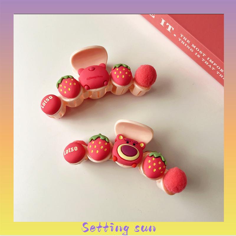 Detail Jepit Rambut Beruang Stroberi Klip Cakar Rambut Besar yang Indah Klip Cakar Rambut Manis Poni Lucu Aksesoris Rambut TN