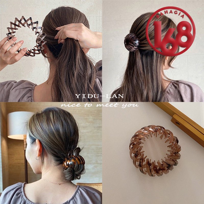 Bahan: plastik Gaya: Korea & Fashion Jenis: Ikat Rambut Paket: 1 Pcs Jepit Rambut Ukuran diameter saat tertutup = 4.5 cm Ukuran diameter saat terbuka = 14 cm