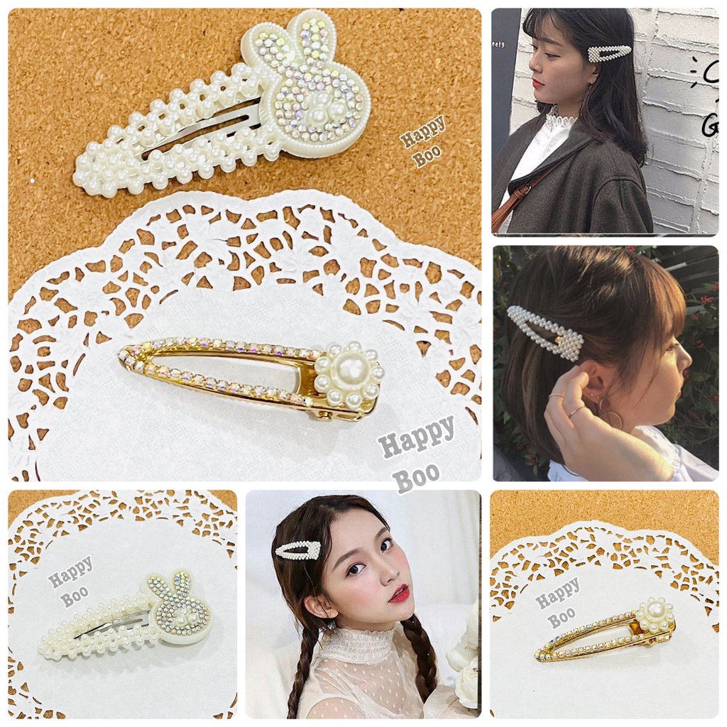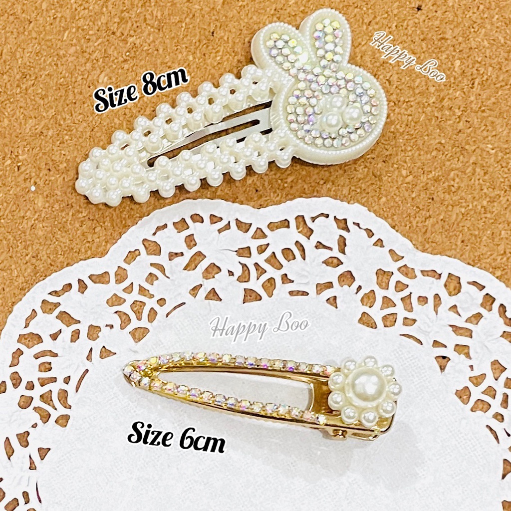 Detail jepit rambut korea kekinian gold permata mutiara bunga GPGA kelinci