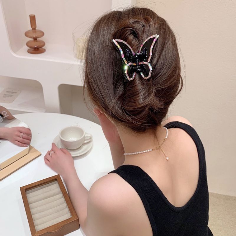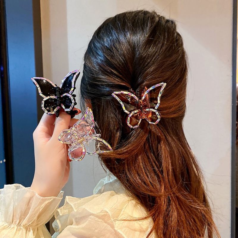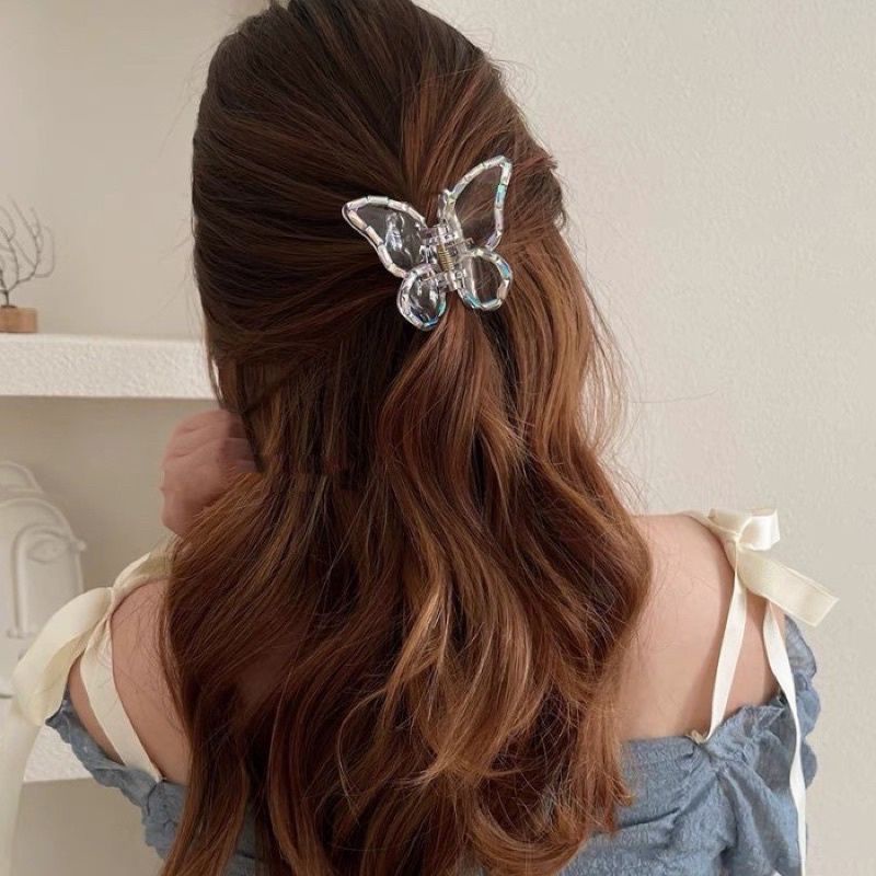 Jepit Rambut Korea Kupu Kupu 4.5cm Dengan Balutan Kristal Jedai Bening Transparan Model Kupu-kupu Butterfly Hair Claw Clips