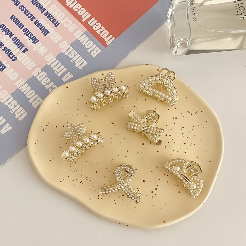 Jepit Rambut Korea Pita Kupu Kupu Mutiara Perempuan Mini Hair Clip Elegan Aksesoris Rambutย