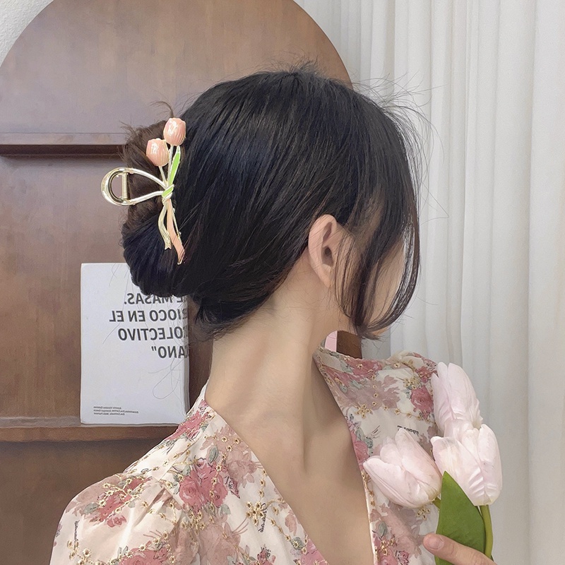Aksesoris Fashion > Aksesoris Rambut > Jepitan & Pin Rambut > Jepit Rambut Model Cakar Desain Bunga Tulip Besar Warna Ungu Biru Pink Gaya Vintage Untuk Wanita